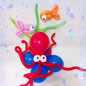 今回は、夏らしい「たこ」と「魚」をテーマに、涼しげな海を感じさせるバルーンアートを作りました。