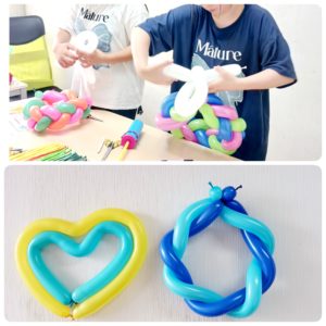 夏の暑さの中、外で活動するのは体力的にも大変でバルーンアートなら涼しい室内で安心して楽しめます。